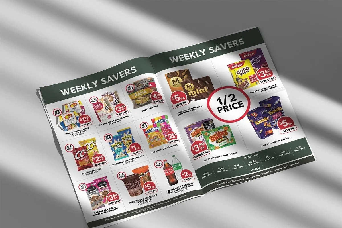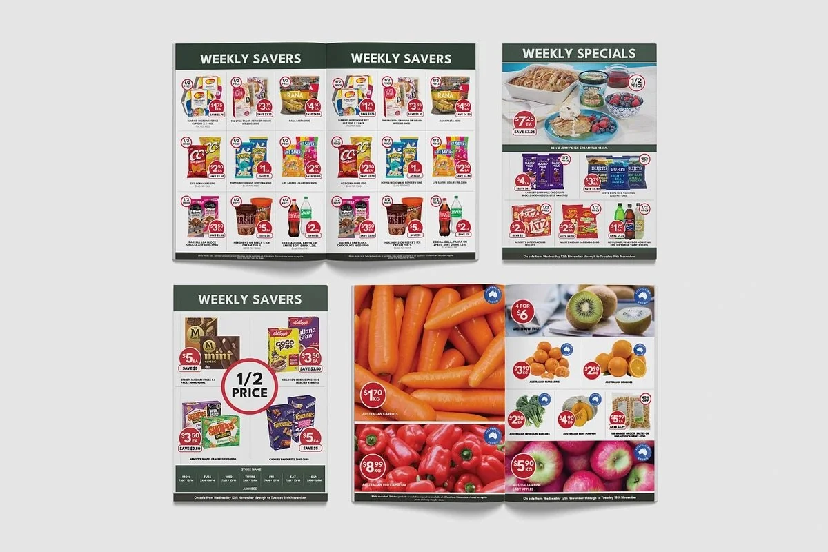 Explore our range of supermarket catalogue and flyer templates — fully editable, ready to customise, and built to help retail stores boost visibility and sales. Perfect for independent grocery stores, bottle shops, and local retailers.